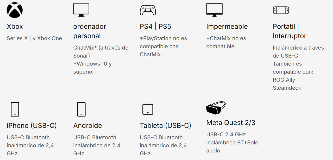 | Suite de software de audio GG + Sonar | Windows 10 o superior (requisito para ChatMix en PC) |