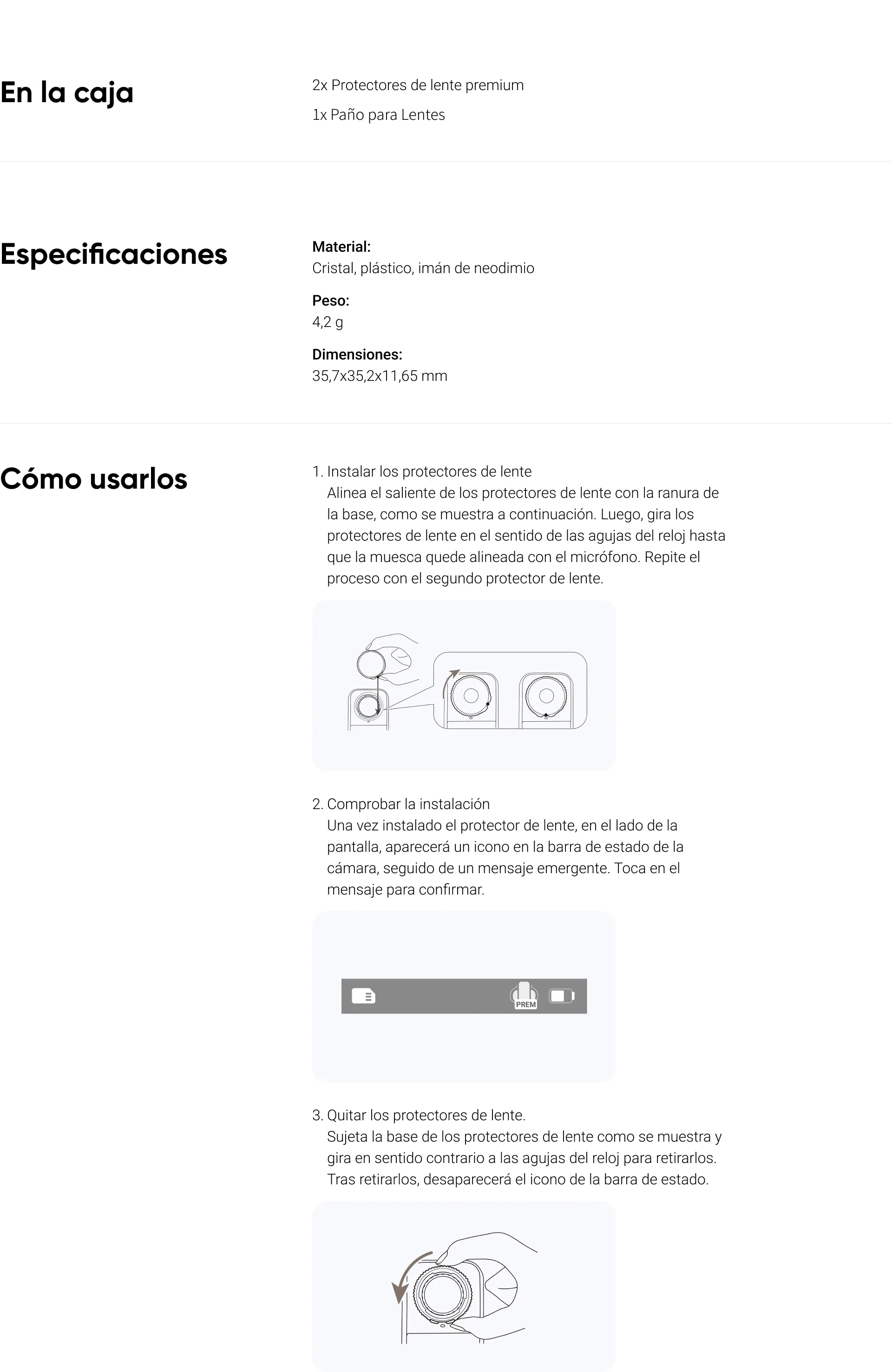 *Los protectores de lentes premium no son impermeables. No utilizar en condiciones húmedas.